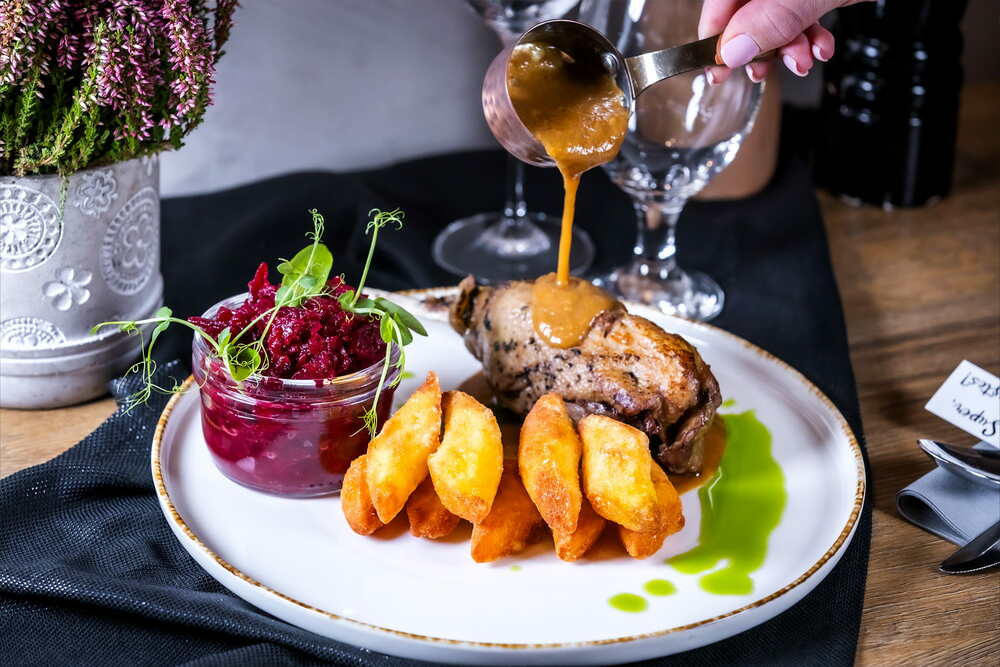 To idealne miejsce na rodzinny obiad, romantyczną kolację czy firmowe przyjęcie. Nasze menu inspirowane jest tradycyjnymi smakami regionu, które wzbogacamy o nowoczesne akcenty kulinarne, by dostarczyć Gościom wyjątkowych doznań smakowych.